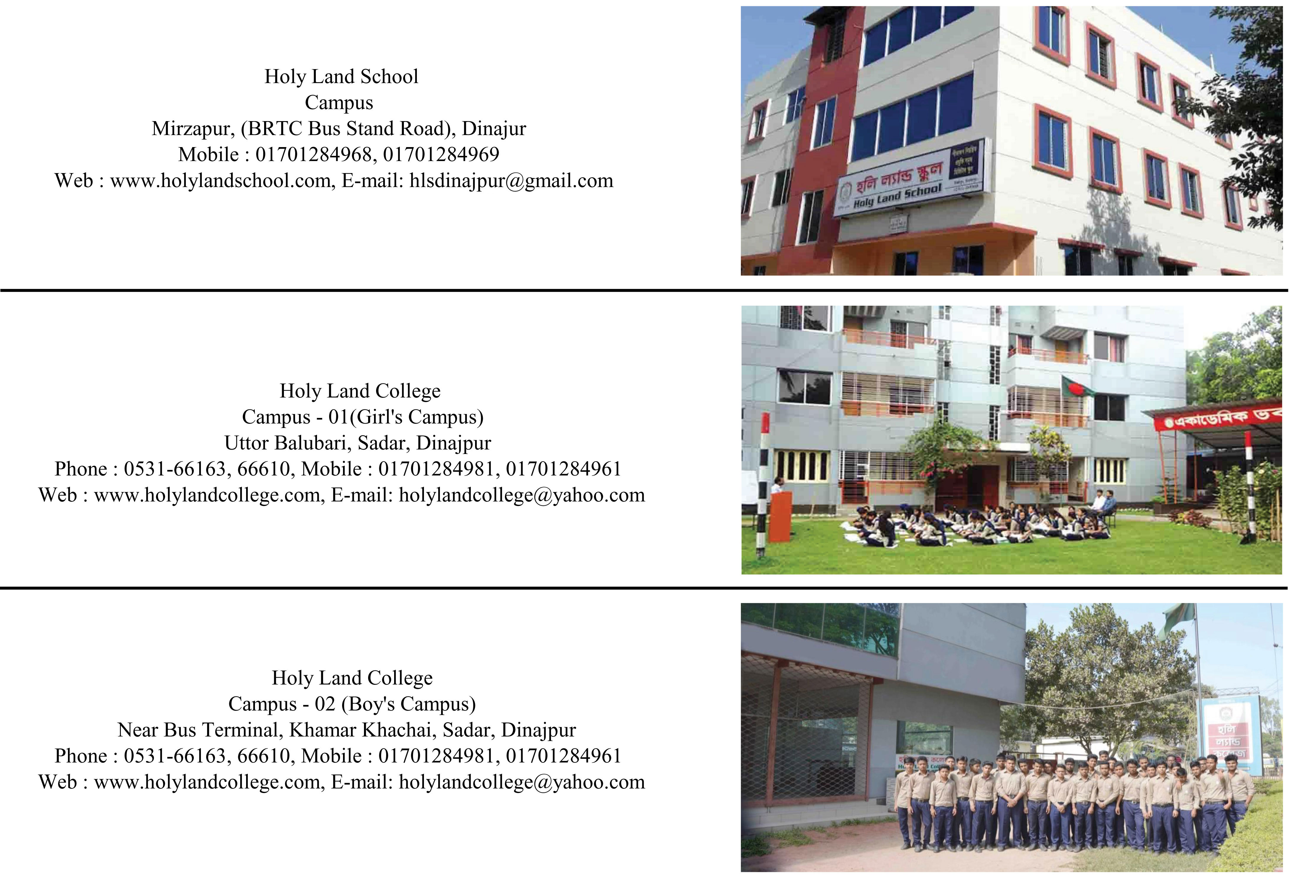 হলি ল্যান্ড স্কুলে প্রাক-প্রাথমিক স্তরে বেবি শ্রেণি, প্রাথমিক স্তরে ১ম-৫ম শ্রেণি ও নিম্নমাধ্যমিক স্তরে ৬ষ্ঠ-৮ম শ্রেণিতে ছাত্র-ছাত্রী একাডেমিক কার্যক্রম চালু রয়েছে.. (হলি ল্যান্ড কলেজে ৯ম-১০ম ও একাদশ ও দ্বাদশ শ্রেণি একাডেমিক কার্যক্রম চালু রয়েছে)...